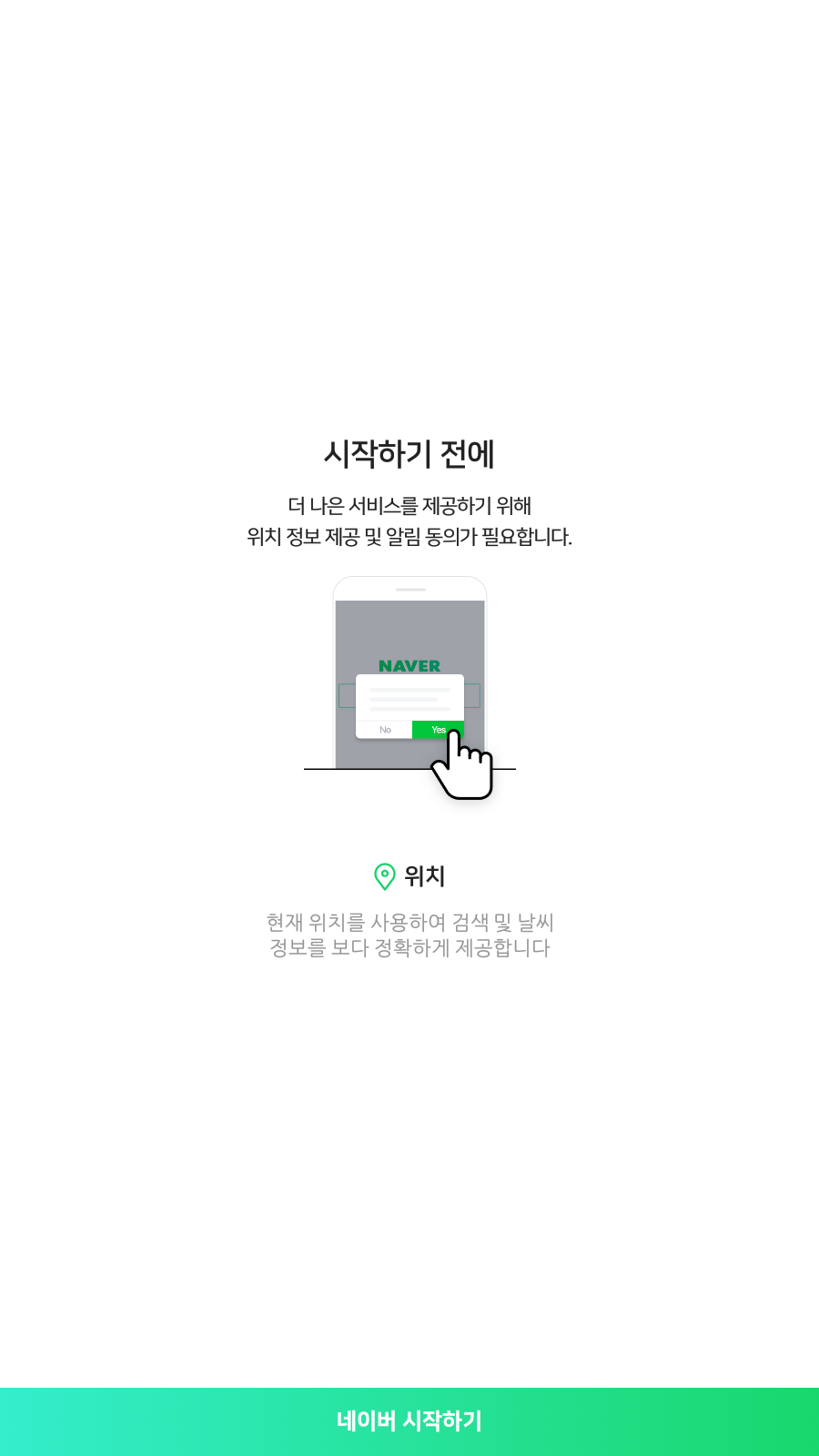위치기반 서비스를 활용할 수 있기때문에 동의하는편이 유리하다고 봅니다. <네이버 시작하기>를 누릅니다.