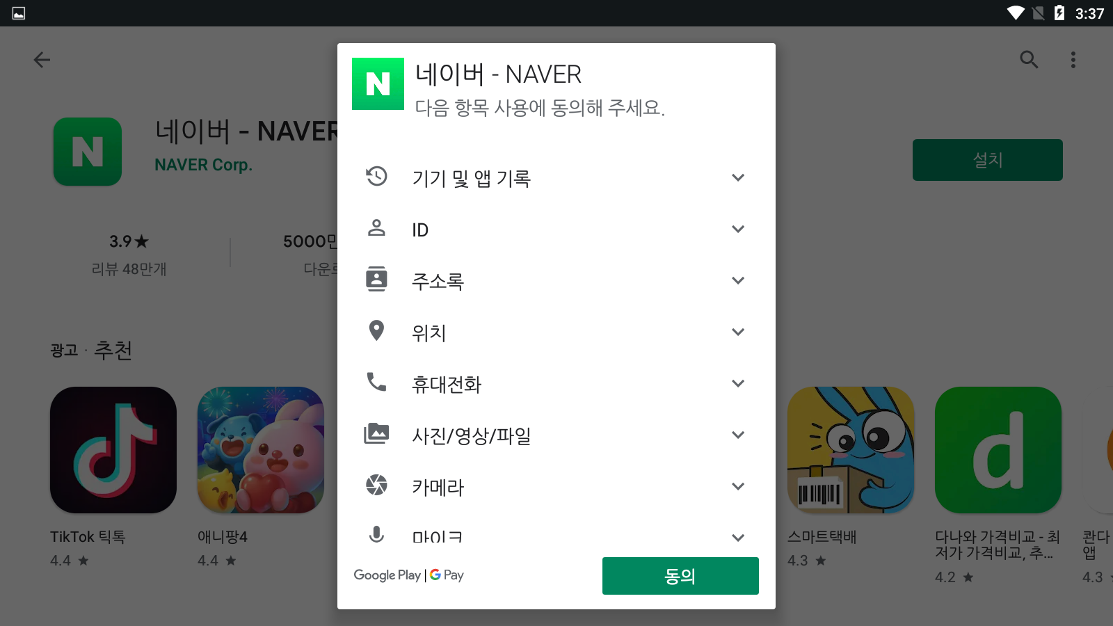 구글 플레이 스토어에서 네이버앱을 다운로드하시려면 여기를 참조하세요.