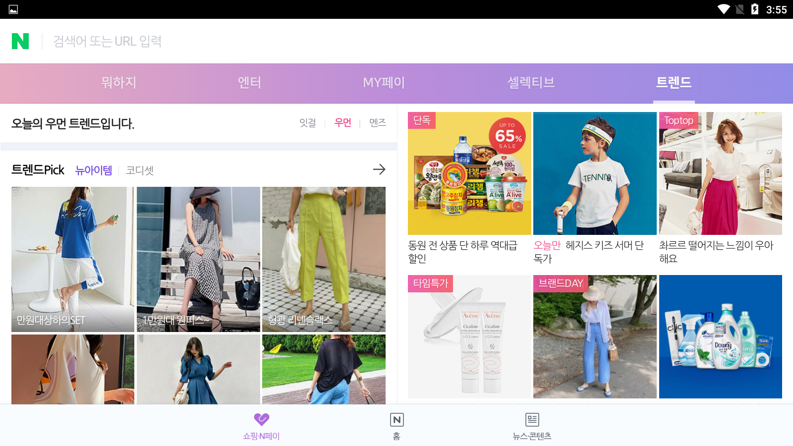 <쇼핑N페이>를 누르면 여러가지 상품들의 내용이 나타납니다.