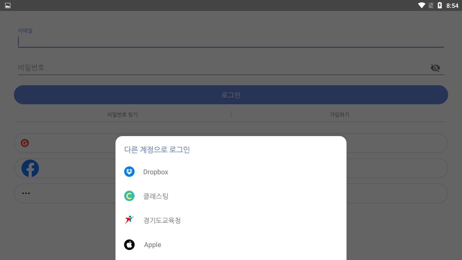 드롭박스와 애플, 클래스팅, 경기도 교육청 계정으로도 로그인이 가능하군요.