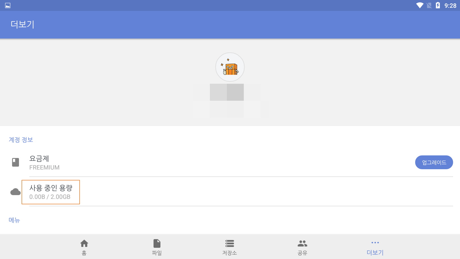 <더보기>를 누르면 현재 한컴스페이스 클라우드의 저장공간 <사용 중인 용량>을 확인할 수 있으며, <업그레이드>를 눌러볼까요?