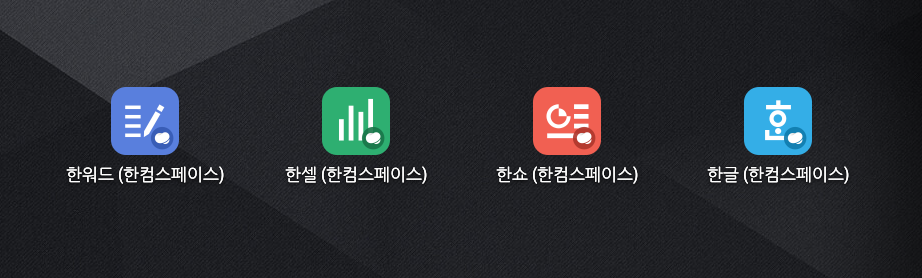바탕화면에 한워드, 한셀, 한쇼, 한글의 아이콘이 생성되었습니다.